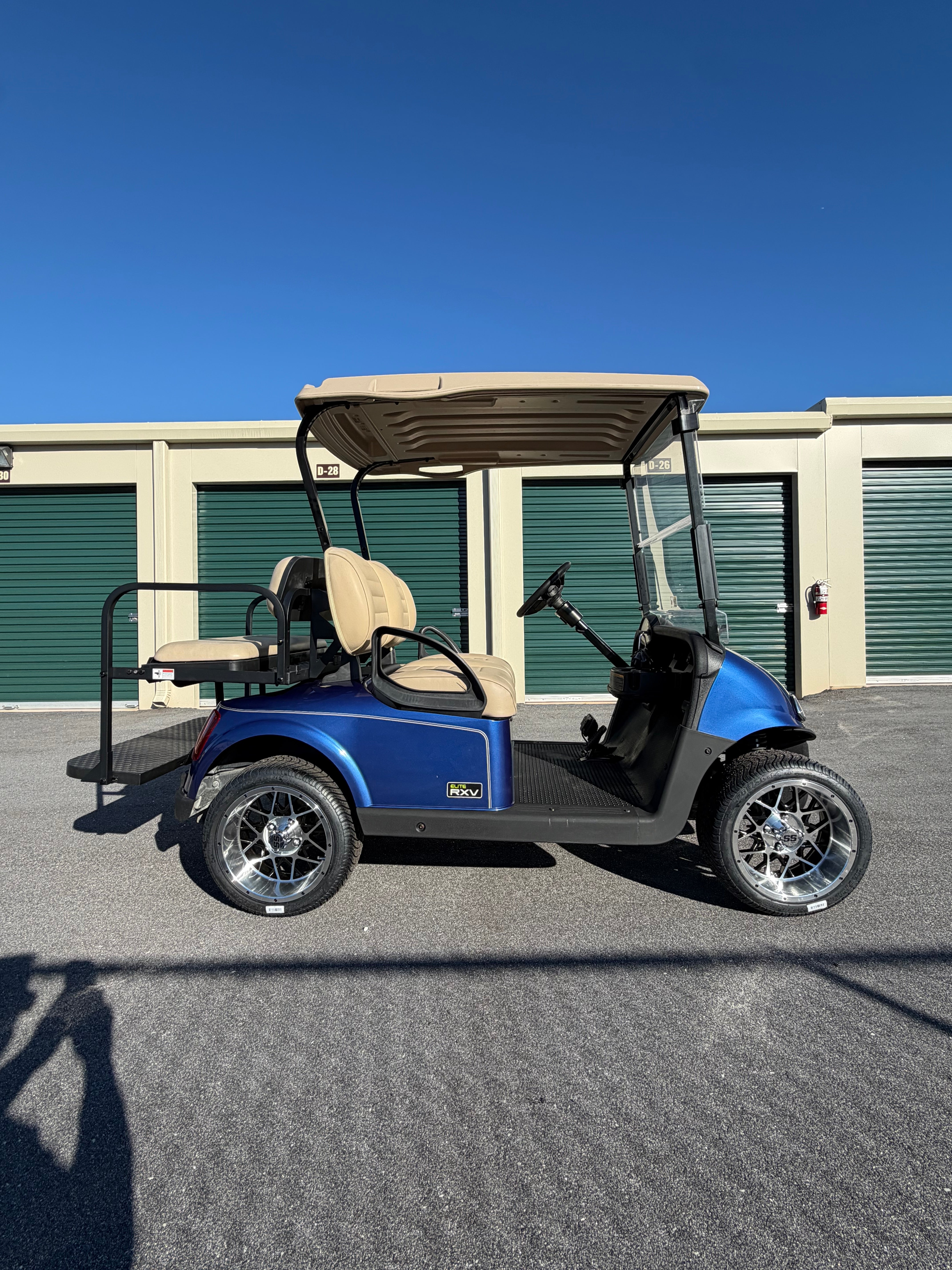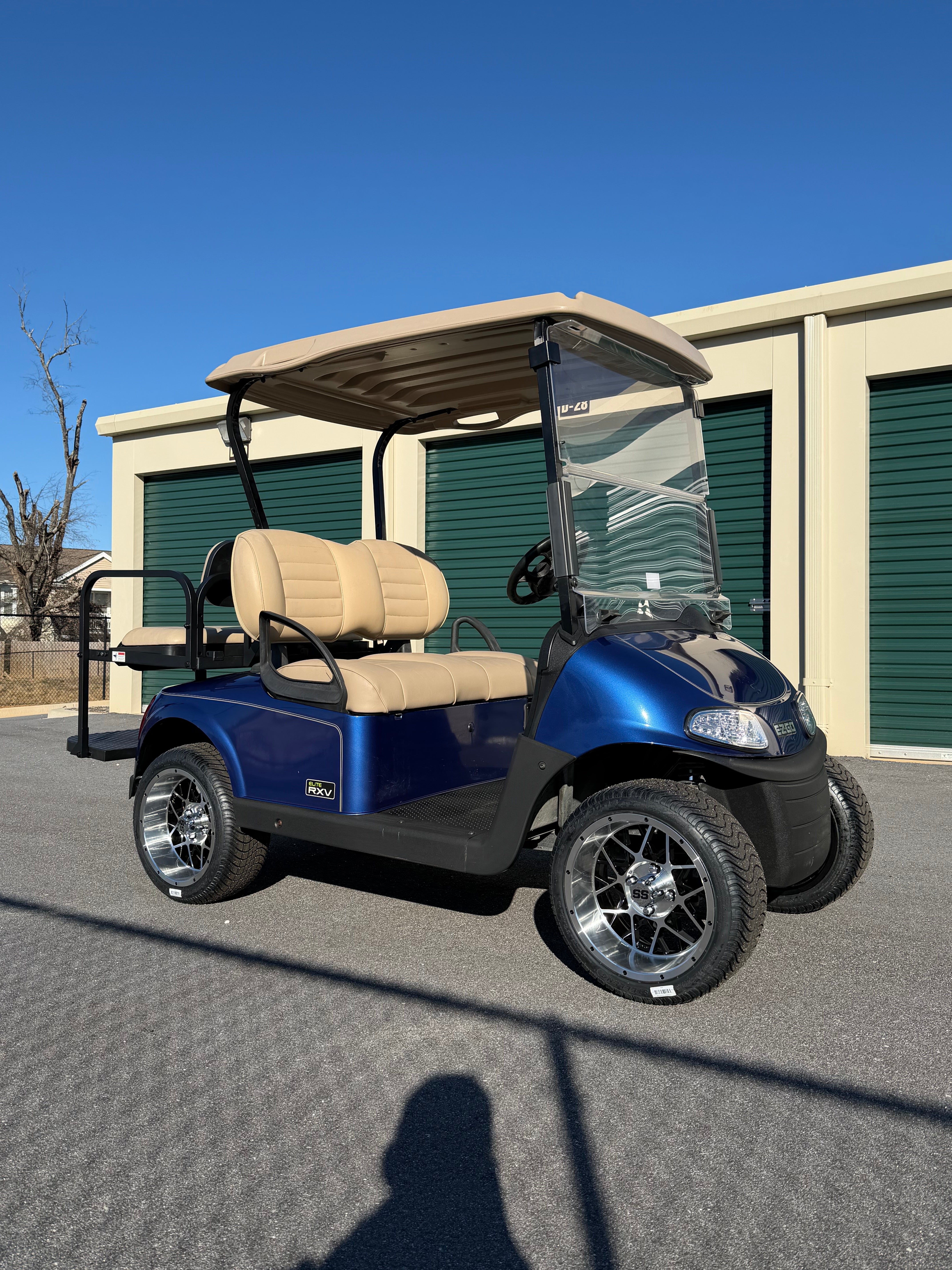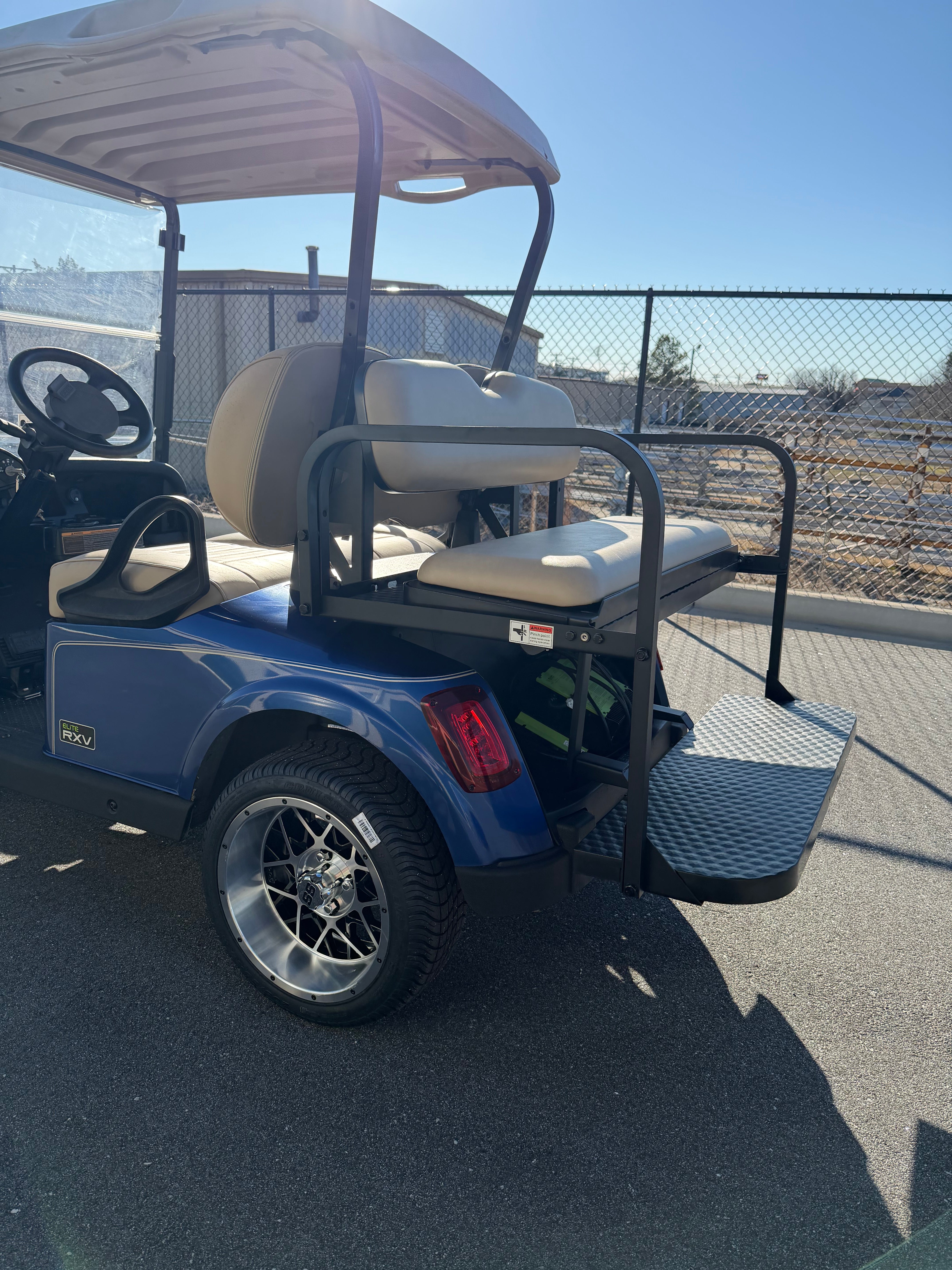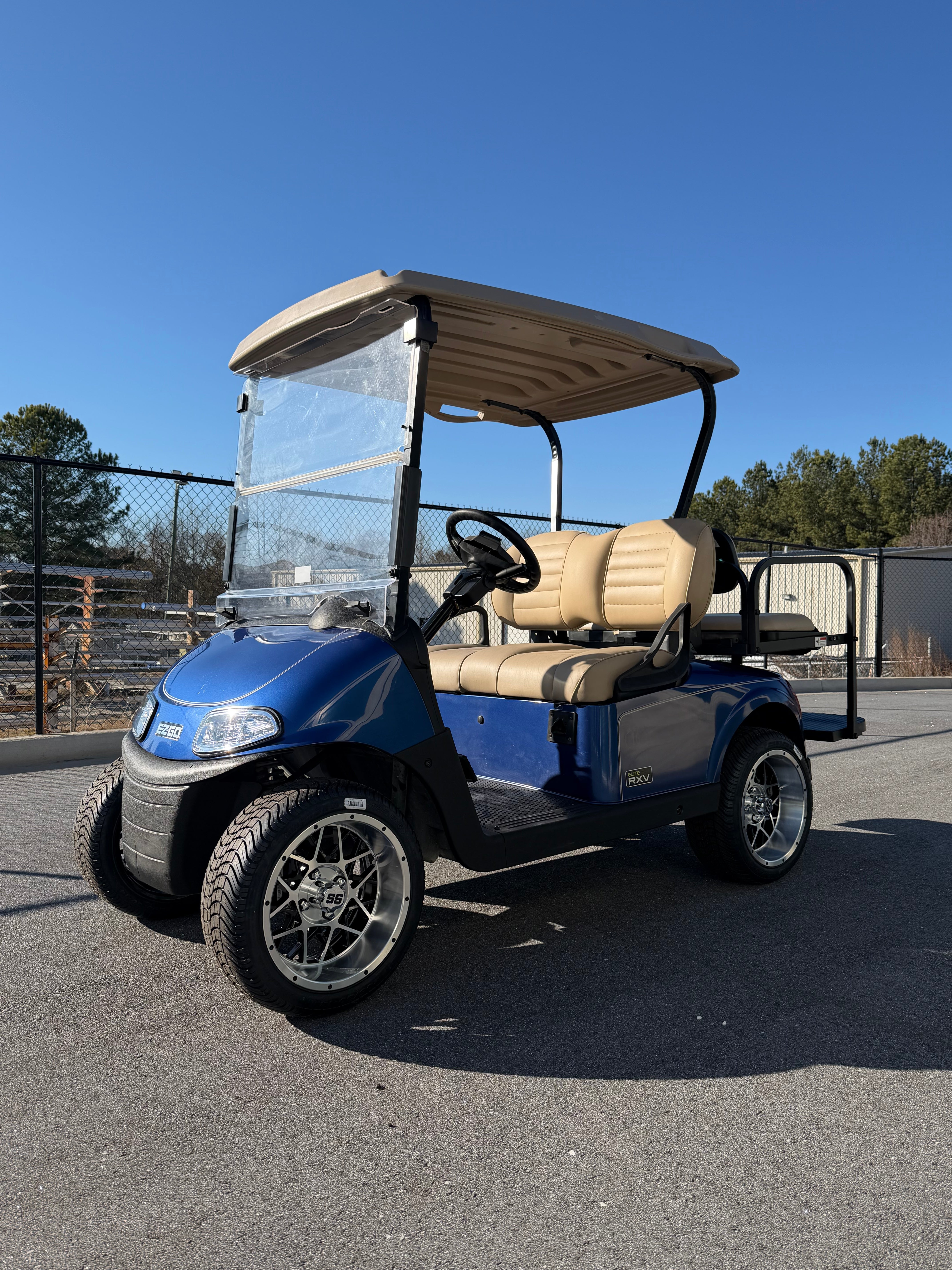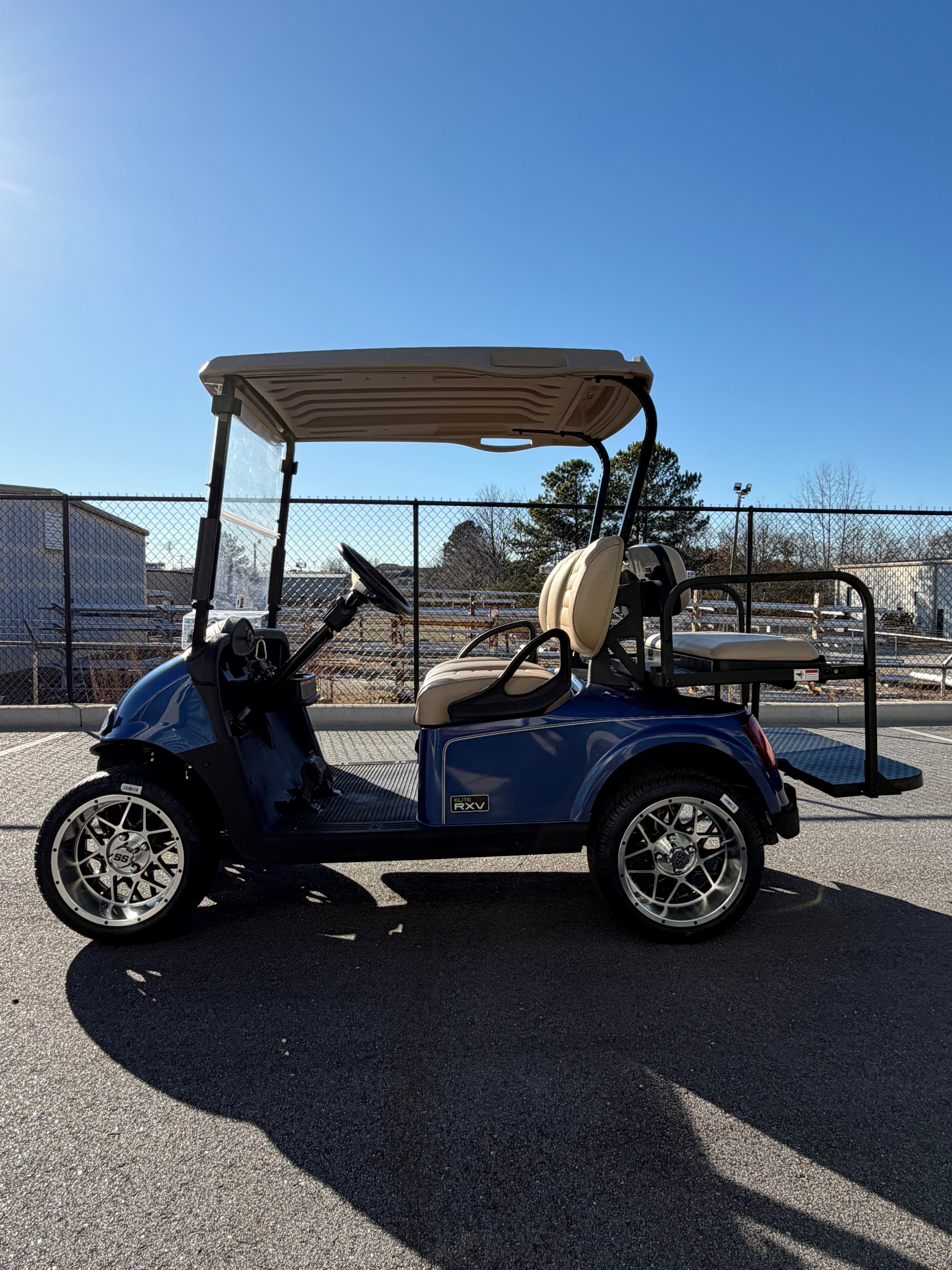 Electric Blue. This cart blends premium RXV Elite comfort with modern lithium efficiency and